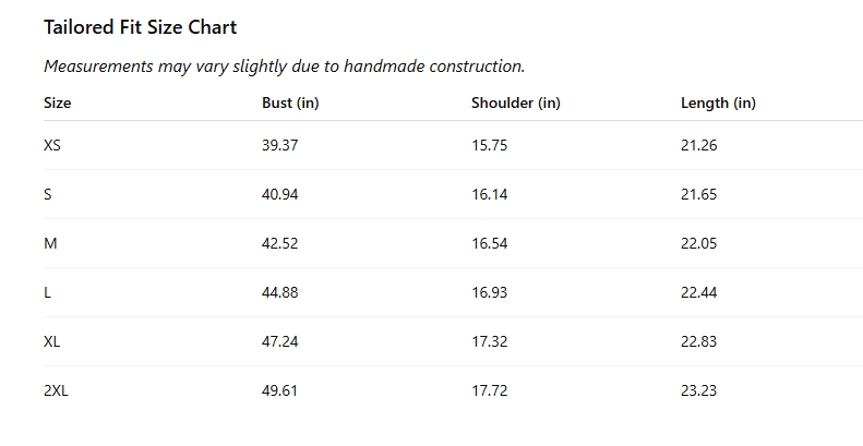 Size Chart (inches)